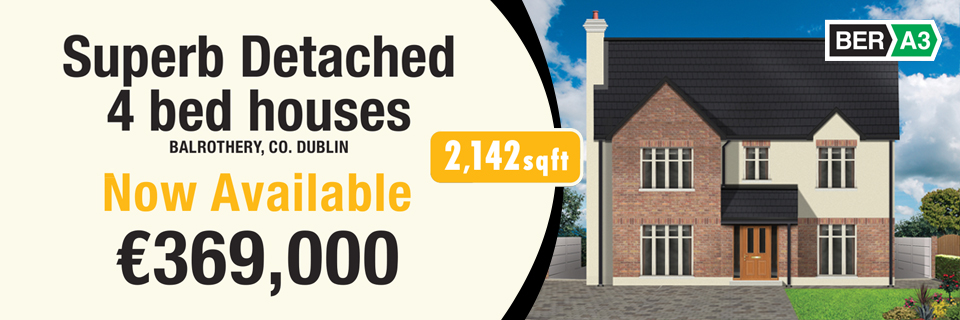 Ten newly constructed detached houses located in the charming village of Balrothery, Co. Dublin. These 4 bedroomed detached houses are laid out in a quiet traditional streetscape with private parking for two cars to the front of the house and large private gardens to the rear. These large luxurious homes are designed to maximise space and benefit from having A3 BER whilst offering outstanding value. Work commenced in February 2014 and the show house will be available to view August 2014.